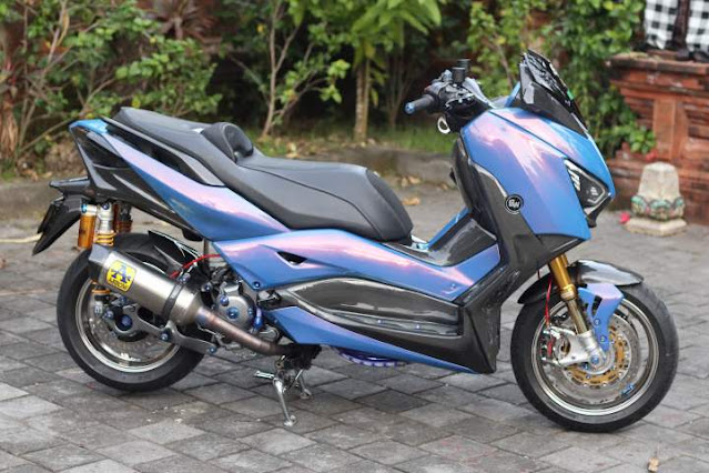 Yup ini membuat tampilan sangat mewah. pemilihan jenis karbon jepang dan repaint xmax 250 jadi biru bunglon dari sebelumnya full air brush.